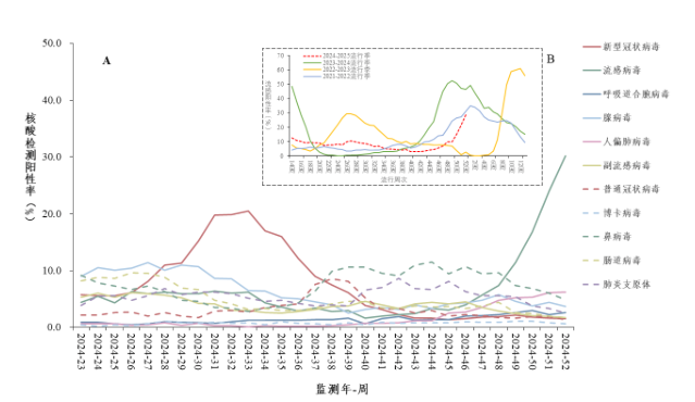 [1] 全国急性呼吸道传染病哨点监测情况(2024年第52周),中国疾病预防控制中心,2025-01-02.